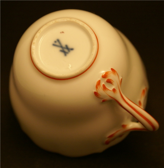 The first factory in the town of Waldenburg was founded by C.S. Rausch in 1820 and even if the business only had a single kiln it was still fairly successful. Attracted by the local possibilities a second factory was opened by the businessman Traugott Hayn in 1829. These two facilities had a quite interesting fate as a decorator from Thuringia at the Rausch facility changed to Hayn and took over the business in 1831; this worker was of course no other than Carl Franz Krister who in 1833 also bought the company from Rausch for an amount of 15500 Taler. It can only be speculated on how Krister actually was able to pay for all this but it appears that before he even started to work for Rausch he already owned a kaolin deposit near the city of Meißen in Saxony which he then used as source for raw material, the required quartz was delivered from a quarry in Schreiberhau (today Szklarska Poręba). Straight from the start Krister tried to catch customers by imitating the base mark of the 'Königliche Porzellan-Manufaktur' (KPM) in Berlin and being very cautious he decided to use a simple vertical bar instead of a sceptre. When KPM Berlin shortly afterwards added the initials 'KPM' to their mark, Krister also added these letters and successfully defended the addition (standing for 'Krister Porzellan Manufaktur') even after the KPM Berlin tried to stop him through a court decision. From the end of 1844 onwards the KPM Berlin changed the strategy and introduced the imperial eagle with sceptre and orb over the initials 'KPM' and Krister introduced an own version of the mark by simply omitting the scepter and orb. But Krister would